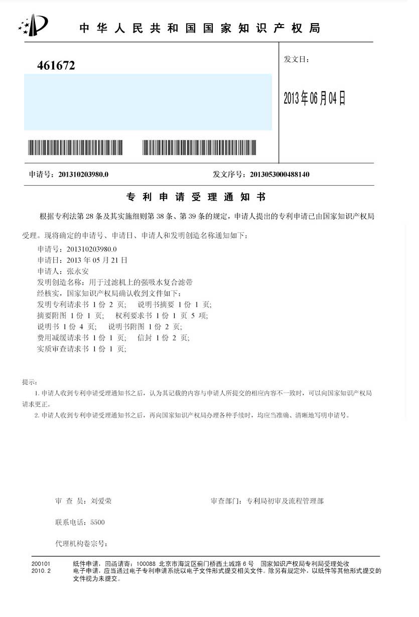 公司成功研發了免加工密封式方形聚丙烯濾板,并獲得發明專利,打破了中國市場免加工密封式方形聚丙烯濾板被歐洲壟斷的局面,產品打入歐洲市場。